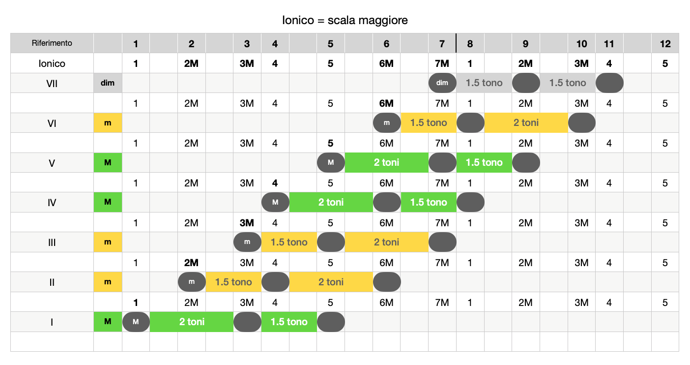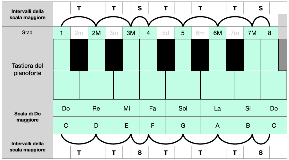 La scala maggiore contiene 7 gradi: